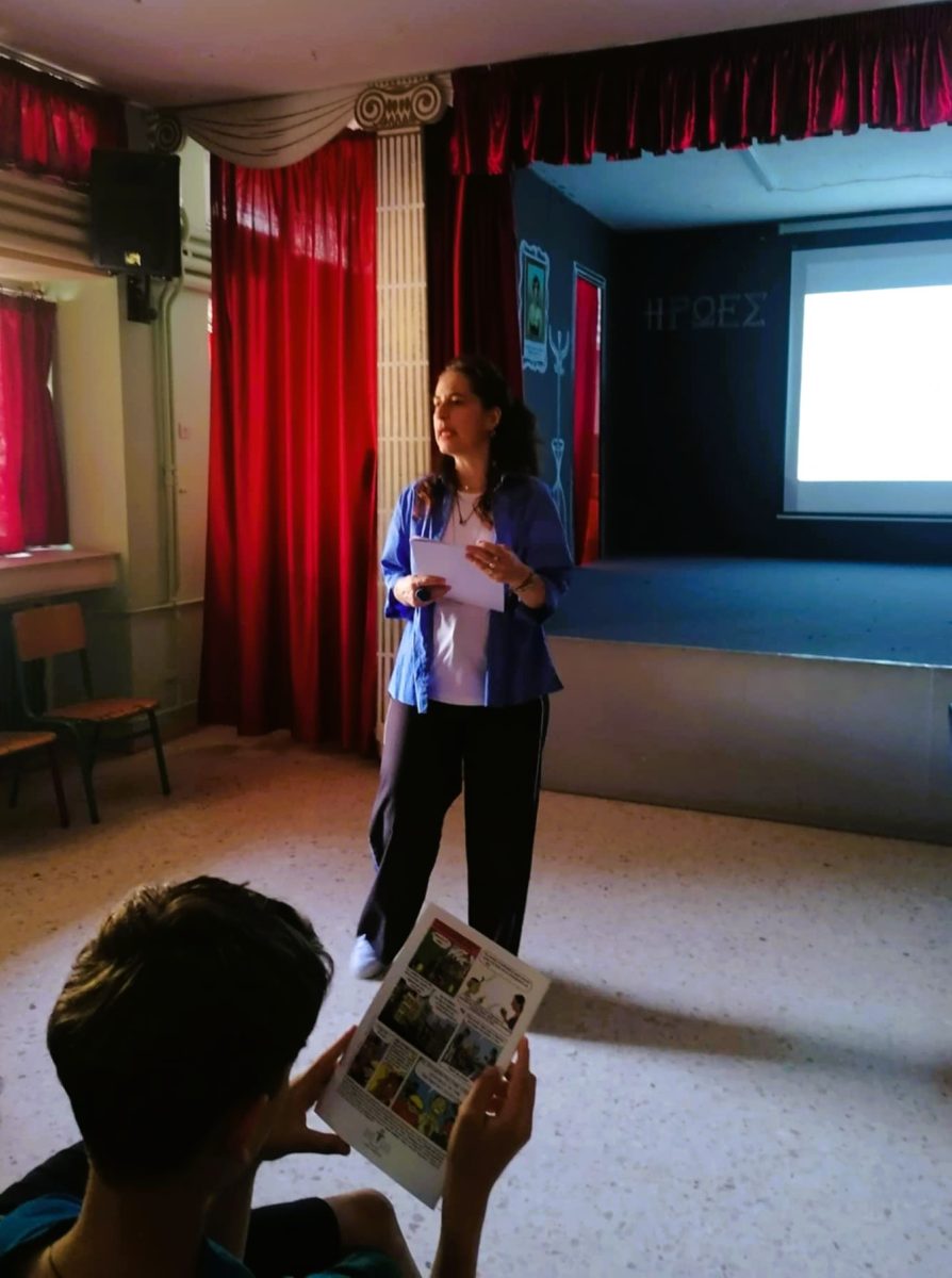 During the visit, Ms. Maria G. Sinanidou, Lawyer and Scientific Associate of HCO, presented to the students the basic principles of copyright. The students had already engaged in educational activities within the framework of the copyright educational program by playing the digital game “Redesign the Octopus” and by watching the animated video “Orpheus Creating”.